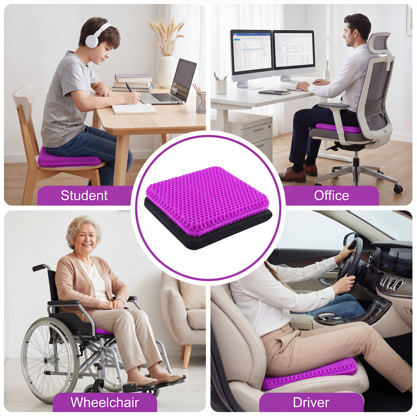 “I ordered this for my home office since my regular chair was getting uncomfortable during long workdays. The cushion has a nice balance where it feels soft at first but still keeps its shape while I’m sitting. I also like that I can move it from my office chair to the car when I need it.”